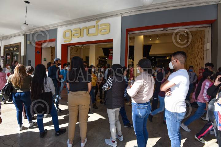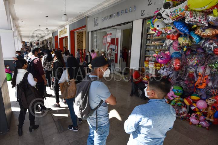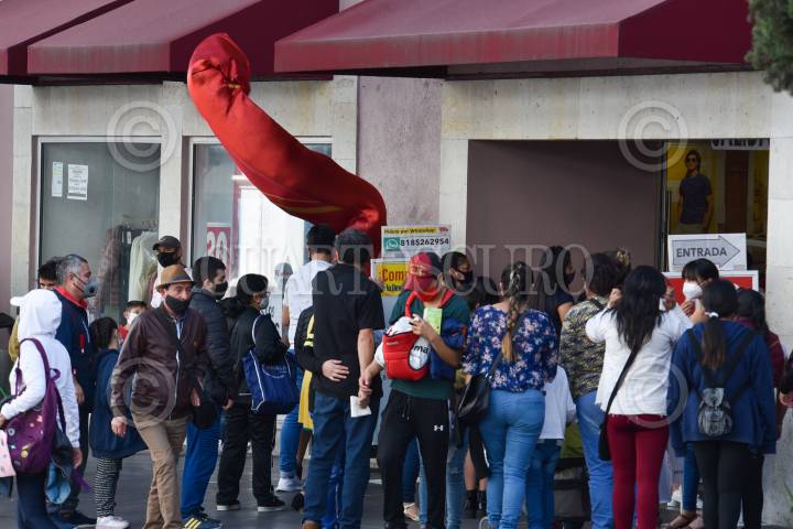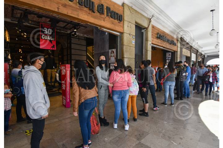 Largas filas se observaron en algunos establecimientos del Centro de Toluca durante el Buen Fin y fin de semana largo, tratando de aprovechar los descuentos que se ofrecen.