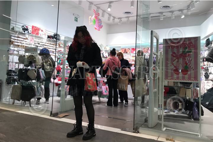 CIUDAD DE MÉXICO, 23DICIEMBRE2024. Capitalinos asisten a centros comerciales para realizar compras navideñas a un día de celebrarse la navidad. Una joven revisa su recibo al salir de la tienda. FOTO: EDGAR NEGRETE LIRA/CUARTOSCURO.COM