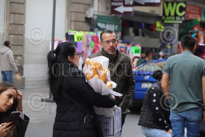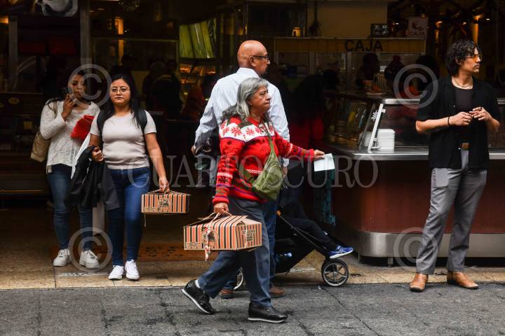 CIUDAD DE MÉXICO, 24DICIEMBRE2024. Una pareja sale de una famosa panadería en el centro de la Ciudad de México con pan para la cena navideña. FOTO: EDGAR NEGRETE LIRA/CUARTOSCURO.COM