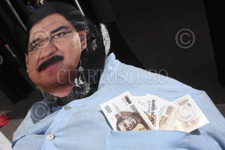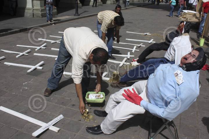 OAXACA, OAXOCA., 06AGOSTO2012.- Integrantes de la organización Comuna Oaxaca encabezados por el diputado Local, Flavio Sosa ex dirigente de la Asamblea Popular de los Pueblos de Oaxaca (APPO) instalaron un plantón frente a Palacio de Gobierno para recriminar al secretario General de Gobierno (Segego), Jesús Martínez Álvarez por no dar solución a 280 conflictos sociales, agrarios y políticos. Además dijo que no es posible que el gobierno del Estado castigue a personas que buscan defender sus tierras y no al ex gobernador Ulises Ruiz, Miguel Ángel Ortega Habib ex secretario de Finanzas y Bulmaro Rito Salinas ex coordinador de Planeación. FOTO: ARTURO PÉREZ ALFONSO /CUARTOSCURO.COM