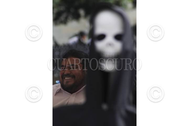 OAXACA, OAXACA., 06AGOSTO2012.- Integrantes de la organización Comuna Oaxaca encabezados por el diputado Local, Flavio Sosa ex dirigente de la Asamblea Popular de los Pueblos de Oaxaca (APPO) instalaron un plantón frente a Palacio de Gobierno para recriminar al secretario General de Gobierno (Segego), Jesús Martínez Álvarez por no dar solución a 280 conflictos sociales, agrarios y políticos. Además dijo que no es posible que el gobierno del Estado castigue a personas que buscan defender sus tierras y no al ex gobernador Ulises Ruiz, Miguel Ángel Ortega Habib ex secretario de Finanzas y Bulmaro Rito Salinas ex coordinador de Planeación. FOTO: ARTURO PÉREZ ALFONSO /CUARTOSCURO.COM