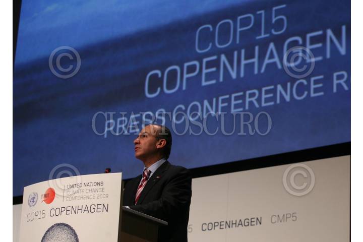COPENHAGEN, DINAMARCA, 18DICIEMBRE20009.- El presidente Felipe Calderón durante un mensaje a los medios de comunicación. FOTO: ALFREDO GUERRERO/CUARTOSCURO.COM