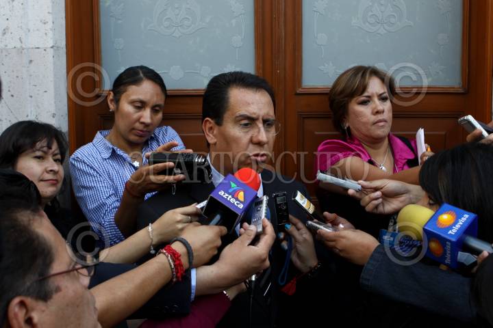 OAXACA, OAXACA 24JUNIO2010.- Manlio Fabio Beltrones, senador del PRI, se entrevisto con el Gobernador de Oaxaca Ulises Ruiz Ortiz, minutos antes de ofrecer una conferencia de prensa en donde ratifico su apoyo al candidato priísta a la gubernatura y afirmo "en política nada es coincidencia", respecto a las grabaciones telefonicas que se han dado a conocer en medios de comunicación. FOTO:MAX NÚÑEZ/CUARTOSCURO.COM