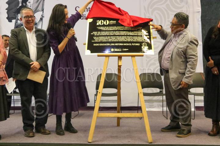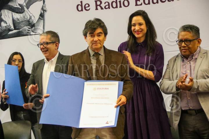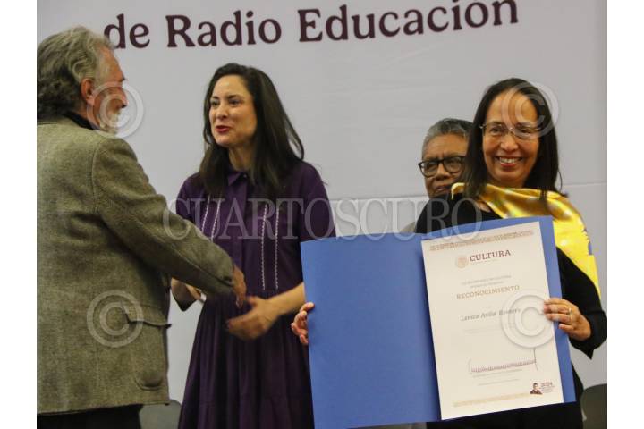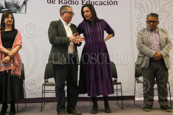 CIUDAD DE MÉXICO. 29NOVIEMBRE2024.- Jenaro Villamil, Claudia Curiel de Icaza, acompañaron a Jesús Alejo Santiago a la ceremonia por el 50 aniversario de Radio Educación, que se llevo acabo en el salón Adolfo López Mateos del Complejo Cultural Los Pinos. FOTO: VICTORIA VALTIERRA/CUARTOSCURO.COM