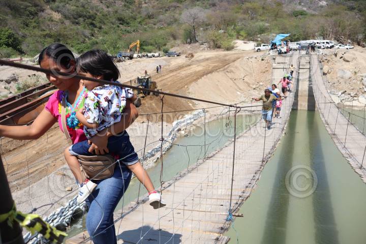 OMITLAN, GUERRERO, 28FEBRERO2025.- De acuerdo con la Secretaría de Infraestructura, Comunicaciones y Transportes (SICT) el paso provisional del puente Omitlán estaría terminado este viernes 28 de febrero. Sin embargo, los trabajos para este paso llevan el retraso de aproximadamente una semana, en la zona de trabajo se observa que únicamente dos máquinas se encuentran trabajando en la construcción de este paso, el cual, según los habitantes, todavía le falta aproximadamente una semana para ser concluido y con las próximas lluvias, puede ser derribado de inmediato. Días después del paso del huracán "John", los pobladores instalaron unas puentes colgantes, los cuales utilizan para trasladarse de Tierra Colorada a Cruz Grande y Ayutla de los Libres y con el paso del tiempo se convirtió en un punto de comercio para los pobladores. Diariamente este puente es utilizado por niños, jóvenes y adultos mayores, para trasladarse a sus lugares de origen, quienes tienen que arriesgar incluso su integridad física, para poder llegar al otro extremo y tomar una unidad de transporte público que los lleve a su destino. FOTO: DASSAEV TÉLLEZ ADAME/CUARTOSCURO.COM