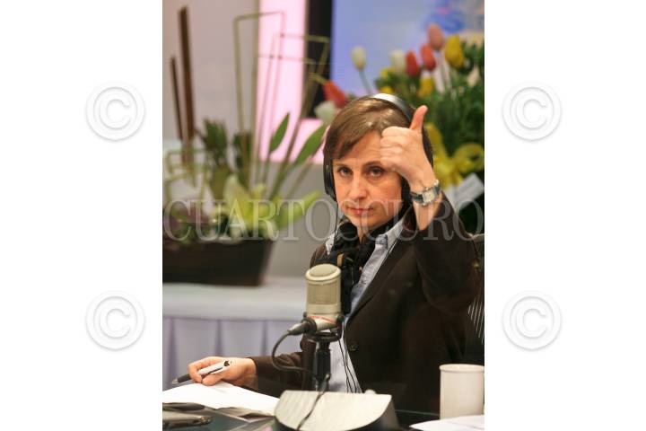 MÉXICO, D.F., 21FEBRERO2011.- Carmen Aristegui, periodista y conductora de la Primera emisión de MVS Noticias, regresó la mañana de hoy tras cesarla el pasado 7 de febrero por supuestas violaciones al código de ética de la radioemisora. La comunicadora mencionó al inicio del programa “ Es una victoria compartida” de radioescuchas y empresa, que dio el paso y revirtió la medida, dijo. FOTO: SAÚL LÓPEZ/CUARTOSCURO.COM