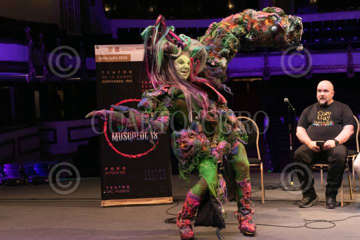 CIUDAD DE MÉXICO, 22MAYO2024.- El Sistema de Teatros de la Secretaría de Cultura de la Ciudad de México anunció la octava edición consecutiva del ciclo escénico: Entre lenchas, vestidas y musculocas. El cual se realizará del 1 de junio al 6 de julio, mismo que ofrecerá múltiples actividades encaminadas a explorar el quehacer artístico y las problemáticas que afectan a la comunidad LGBTTTIQ+. Durante la rueda de prensa realizada en el Teatro de la Ciudad Esperanza Iris la directora del Sistema de Teatros de la Ciudad de México, Emilia Cantú Alvarado y el subdirector de Programación, Cristian José García, recordaron que, desde su creación en 2017, este esfuerzo institucional ha abierto los recintos capitalinos para dar voz a los artistas que integran esta comunidad. “Habrá artes escénicas con un cruce con otras disciplinas como las artes visuales, cine, drag y jugaremos también con el ballroom. Son cinco recintos, 55 funciones 16 espectáculos y dos talleres. El colorido y la fiesta, así como la denuncia y la reflexión llegarán con un gran abanico de propuestas artísticas. Los derechos, la diversidad, el respeto, la equidad, el amor, la inclusión, pero, sobre todo, el orgullo, la libertad y la esperanza, se darán nueva cita en nuestros espacios”, explicó Cantú. FOTO: MOISÉS PABLO/CUARTOSCURO.COM