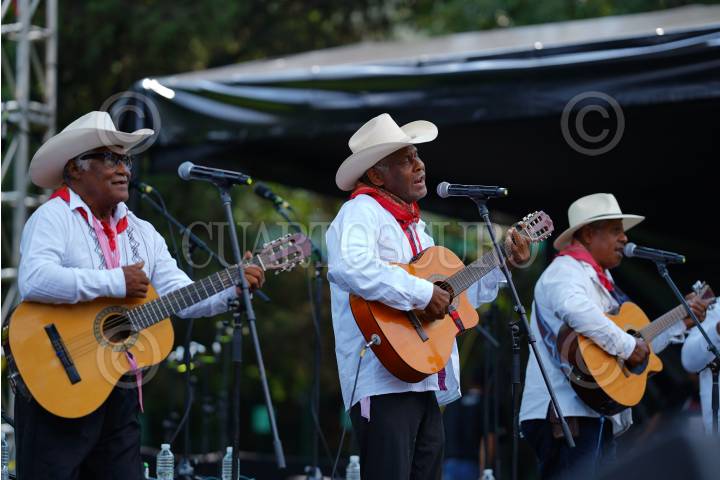CIUDAD DE MÉXICO, 06SEPTIEMBRE2025.- Integrantes del grupo “Los Negros y sus Fandangos” durante su presentación en el festival “Son Resistencia” en el Complejo Cultural Los Pinos. El acto busca reconoce el legado cultural de los pueblos y comunidades indígenas y afromexicanas que forman parte nuestra identidad y memoria. FOTO: GALO CAÑAS/CUARTOSCURO.COM