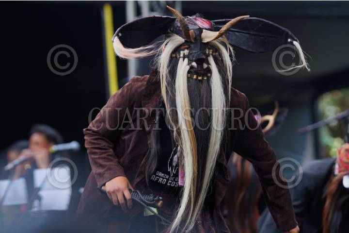 CIUDAD DE MÉXICO, 06SEPTIEMBRE2025.- Mujeres integrantes de la compañía de danza de diablas “Afrocosechas” bailan con el tradicional vestuario de la Costa Chica de Guerrero durante el festival Son Resistencia en el Complejo Cultural Los Pinos. El acto busca reconoce el legado cultural de los pueblos y comunidades indígenas y afromexicanas que forman parte nuestra identidad y memoria. FOTO: GALO CAÑAS/CUARTOSCURO.COM