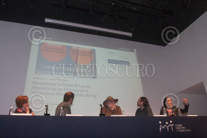 MÉXICO, D.F., 02ABRIL2013.- La directora de change .org, Luisa Ortiz, acompañó al Movimiento por la Paz con Justicia y Dignidad (MPJD), encabezado por Javier Sicilia, acompañado por el cineasta Carlos Bolado, y el escritor Juan Villoro, para presentar oficialmente su exigencia de que la Estela de Luz sea resignificada como un memorial de las víctimas y un centro de cultura para la paz, mediante una campaña de recolección de al menos 100 mil firmas a través de la página de Internet change.org, que inició hoy y durará hasta el 8 de mayo. FOTO: JUAN PABLO ZAMORA /CUARTOSCURO.COM