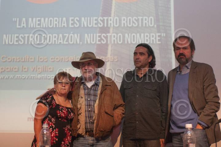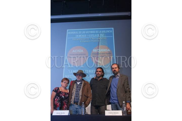 MÉXICO, D.F., 02ABRIL2013.- El Movimiento por la Paz con Justicia y Dignidad (MPJD) , encabezado por Javier Sicilia, y acompañado por el cineasta Carlos Bolado, el escritor Juan Villoro, y la directora de change .org, Luisa Ortiz, presentaron oficialmente su exigencia de que la Estela de Luz sea resignificada como un memorial de las víctimas y un centro de cultura para la paz, mediante una campaña de recolección de al menos 100 mil firmas a través de la página de Internet change.org, que inició hoy y durará hasta el 8 de mayo. El poeta Sicilia, indicó que la campaña de recolección de firmas ya tiene la adhesión de personajes públicos de la cultura y la política, entre ellos Cuauhtémoc Cárdenas, Alejandro González Iñárritu, Diego Luna, Gael García Bernal y Miquel Adriá, y anunció que luego de reunir al menos 100 mil firmas las llevará a la residencia oficial de Los Pinos para entregarlas al presidente Enrique Peña Nieto. FOTO: JUAN PABLO ZAMORA /CUARTOSCURO.COM