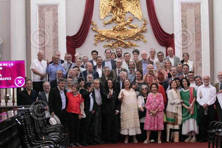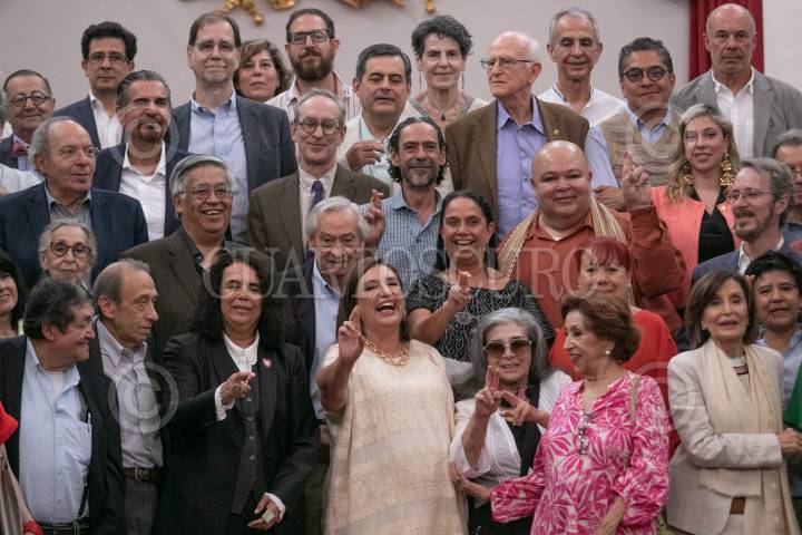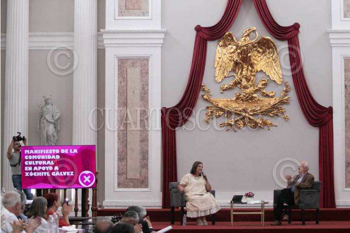 CIUDAD DE MÉXICO, 20MAYO2024.- Xóchitl Gálvez, candidata a la Presidencia de la República por la coalición Fuerza y Corazón por México, firmó el manifiesto de la comunidad cultural, entre los firmantes se encuentran Roger Bartra, Enrique Krauze, Ángeles Mastretta, Héctor Aguilar Camín, Agustín Basave, y Jorge Castañeda. La reunión se dio en la Escuela Nacional de Ingenieros. FOTO: MOISÉS PABLO/CUARTOSCURO.COM