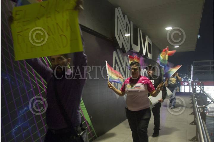 MONTERREY, NUEVO LEÓN, 29MARZO2019.- Miembros de la comunidad LGBT Monterrey, protestan afuera del bar "MAMA" donde una mujer fue sacada del lugar por besar a su novia. Los activistas rechazan los actos de discriminación en el antro. FOTO: GABRIELA PÉREZ MONTIEL /CUARTOSCURO.COM