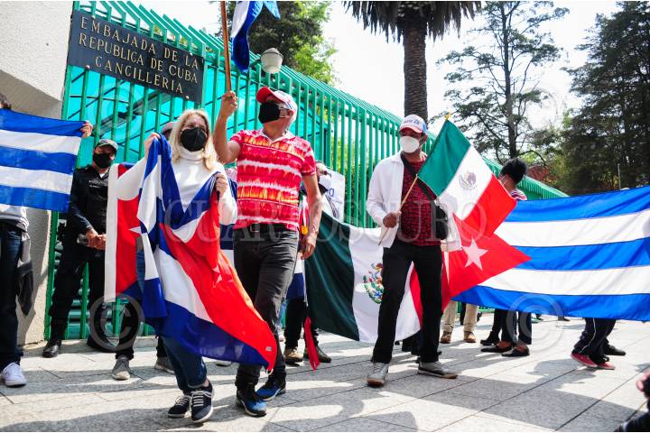 Ante las protestas que se suscitaron este domingo, cubanos residentes en México se manifestaron.