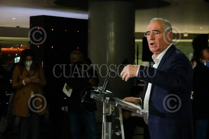 Julen Rementeria durante la conferencia de prensa para aclarar la firma de la carta conjunta con el partido español de ultraderecha VOX.
