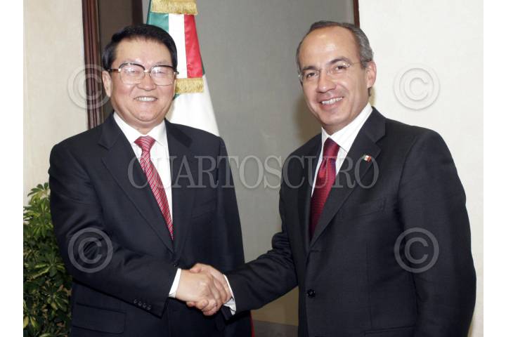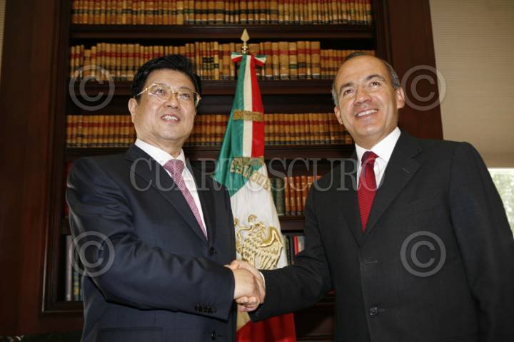 MEXICO D.F. 16NOVIEMBRE2007.- Wang Zhaoguo, miembro del buro político del Comite Central del Partido Comunista Chino, se reunió con Felipe Calderón Hinojosa, Presidente de México, en la residencia oficial de Los Pinos. FOTO: ARIEL GUTIERREZ/CUARTOSCURO.COM
