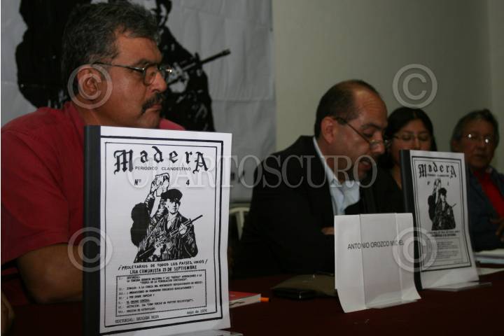 MÉXICO D.F. 23SEPTIEMBRE2009.- Jaime Laguna Berber, acompañado de Eladio Torres Flores, Antonio Orozco, Elpidia Sánchez Nieto Mario Álvaro Cartagena López “Guaymas” y José Luis Esparza Flores, integrantes de la Liga Comunista 23 de Septiembre, con motivo de su aniversario dieron a conocer el nuevo sitio web de la publicación “Madera Periódico Clandestino” esto en el Club de Periodista. FOTO: GUILLEMO PEREA /CURTOSCURO.COM