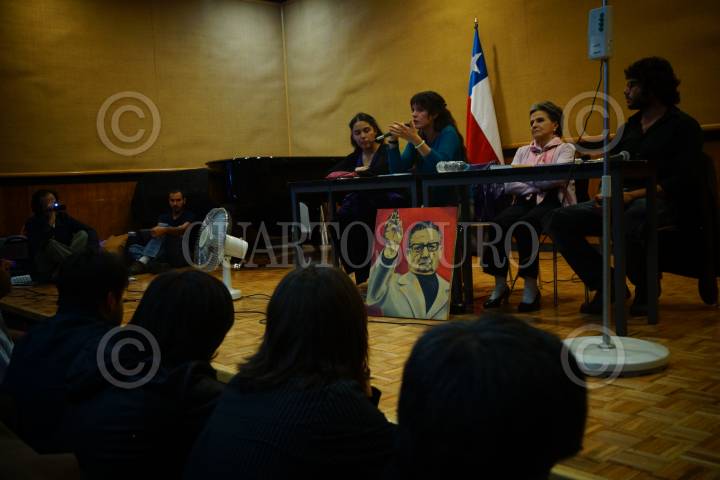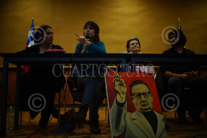 MÉXICO D.F., 15JUNIO2012.- Camila Vallejo, vicepresidenta de la Federación de Estudiantes de Chile y Natalia Cuevas, del Comité Central de las Juventudes Comunistas de Chile, dieron una conferencia a estudiantes de la Escuela Nacional de Música, en la cual hablaron acerca del movimiento chileno y también acerca del movimiento estudiantil mexicano. FOTO: PEDRO ANZA /CUARTOSCURO.COM