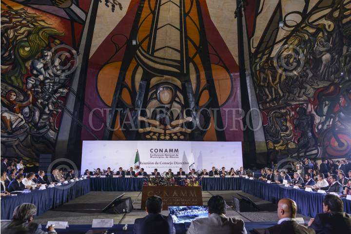 CIUDAD DE MÉXICO, 06MAYO2016.- Está mañana en el Polyforum Cultural Siqueiros se realizó la Reunión de Consejo Directivo de la Conferencia Nacional de Municipios de México (Conamm), en la cual tomó protesta como nuevo presidente Isidro López Villarreal, alcalde de Saltillo, Coahuila FOTO: ADOLFO VLADIMIR /CUARTOSCURO.COM