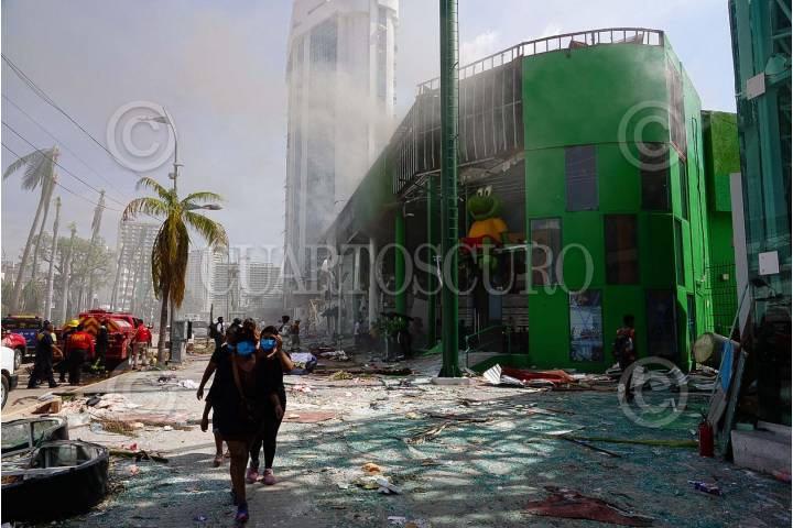 ACAPULCO, GUERRERO, 27OCTUBRE2023.- Conato de incendio en las inmediaciones de un centro comercial afectado por el Huracán Otis. FOTO: ROGELIO MORALES/CUARTOSCURO.COM