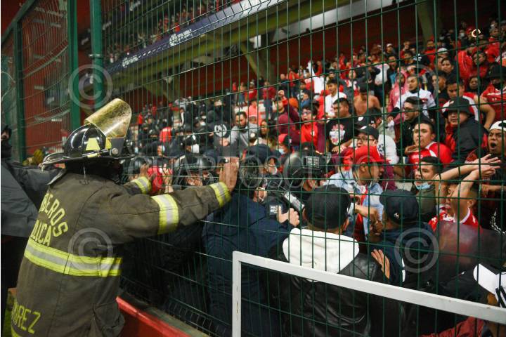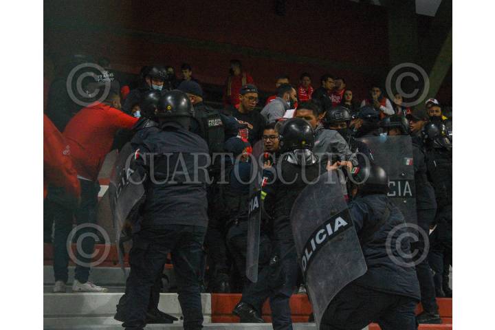 Policías estatales controlaron un conato de bronca en el área de las porras de los Diablos de Toluca.