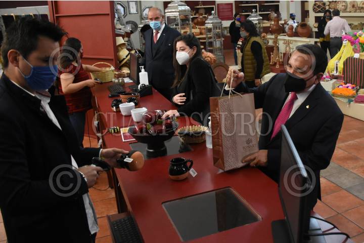 José Manuel López Campos, presidente de la Concanaco Servytur, adquiere un producto dentro del Fonart.