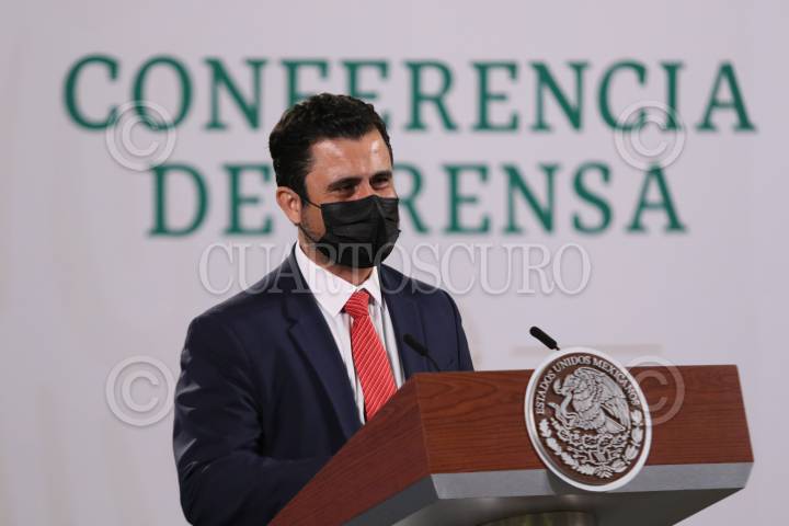 José Héctor Tejada Sharp, presidente la Confederación de Cámaras Nacionales de Comercio (CONCANACO); durante la conferencia mañanera en Palacio Nacional en donde habló sobre el Buen Fin.