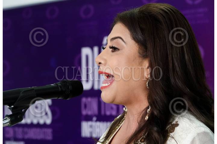 CIUDAD DE MÉXICO, 03ABRIL2024.- Clara Brugada, candidata a la jefatura de Gobierno por la alianza Sigamos Haciendo Historia (MORENA-PVEM-PT), participó encuentro "Diálogo con tus candidatos" que organiza la Cámara de Comercio, Servicios y Turismo de la Ciudad de México (CANACO). FOTO: GALO CAÑAS/CUARTOSCURO.COM