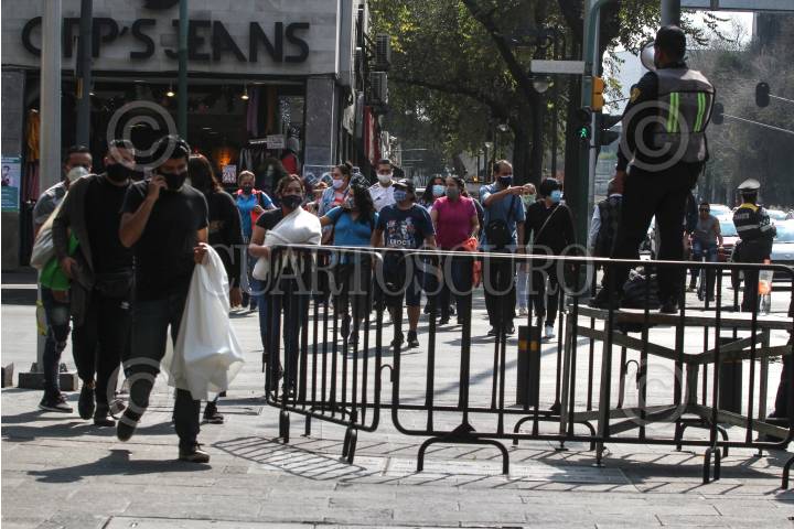 Cercos policiacos no impiden que las calles del Centro Histórico se aglomeren. FOTO: ROGELIO MORALES /CUARTOSCURO.COM