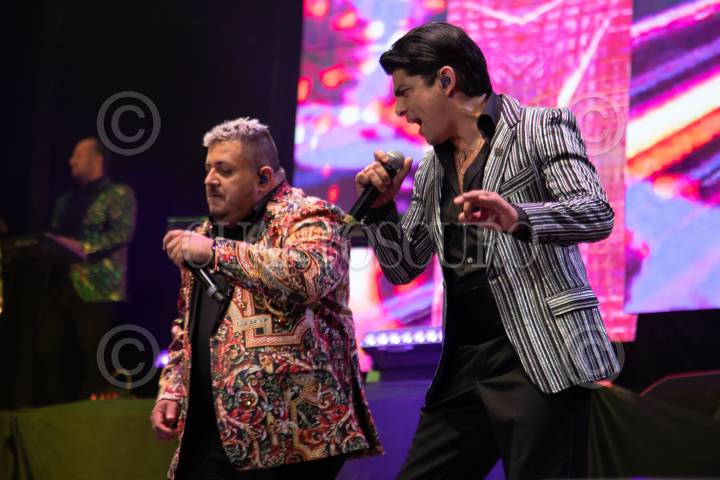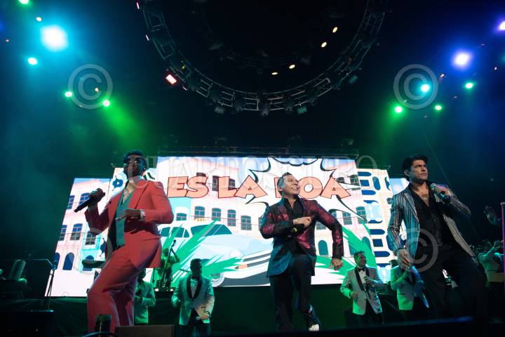 La Internacional Sonora Santanera, Lupillo Rivera y Erik Rubín durante su participación en el concepto musical “Cumbia Machine Tour” que fusiona ritmos tropicales con cantantes de Pop y otros géneros.