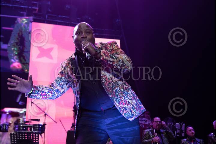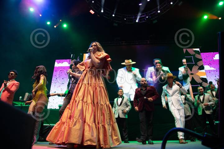 Kalimba durante su participación en el concepto musical “Cumbia Machine Tour” que fusiona ritmos tropicales con cantantes de Pop y otros géneros.