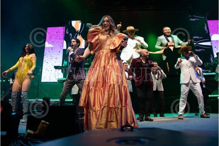 La Original Sonora Dinámita y Víctor García durante su participación en el concepto musical “Cumbia Machine Tour” que fusiona ritmos tropicales con cantantes de Pop y otros géneros.