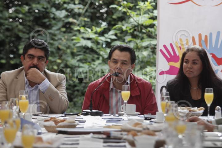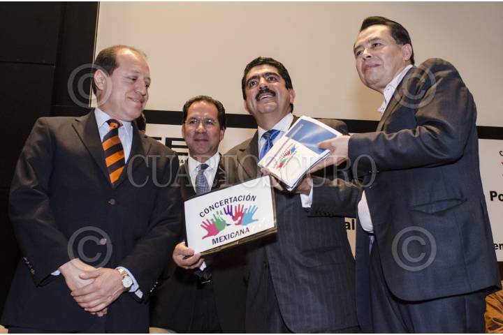 MÉXICO, D.F., 05NOVIEMBRE2012.- Ramón Sosa montes junto a Manuel Espino, Rene Arce, Jorge Carlos Díaz Cuervo y durante la conferencia donde anunciaron su proyecto de crear un nuevo partido politico llamado Concertacion Mexicana. FOTO: ENRIQUE ORDÓÑEZ /CUARTOSCURO.COM