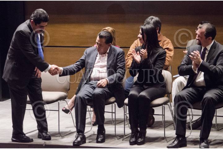 MÉXICO, D.F., 15ENERO2013.- En una ceremonia oficial la organización social y política "Concertación Mexicana", encabezada por Manuel Espino (en la imagen saludando a René Arce), ex miembro del Partido Acción Nacional (PAN), inició el trámite para obtener el registro como partido político ante consejeros del Instituto Federal Electoral (IFE). FOTO: MISAEL VALTIERRA / CUARTOSCURO.COM