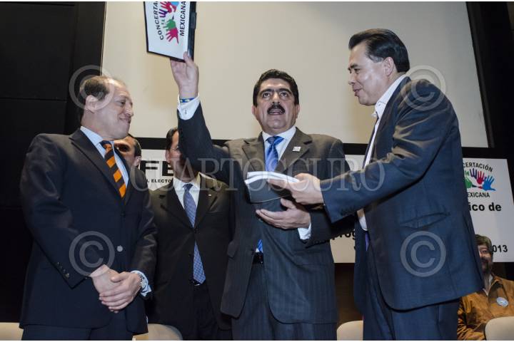 MÉXICO, D.F., 15ENERO2013.- En una ceremonia oficial la organización social y política "Concertación Mexicana", encabezada por Manuel Espino, ex miembro del Partido Acción Nacional (PAN), inició el trámite para obtener el registro como partido político ante consejeros del Instituto Federal Electoral (IFE). FOTO: MISAEL VALTIERRA / CUARTOSCURO.COM