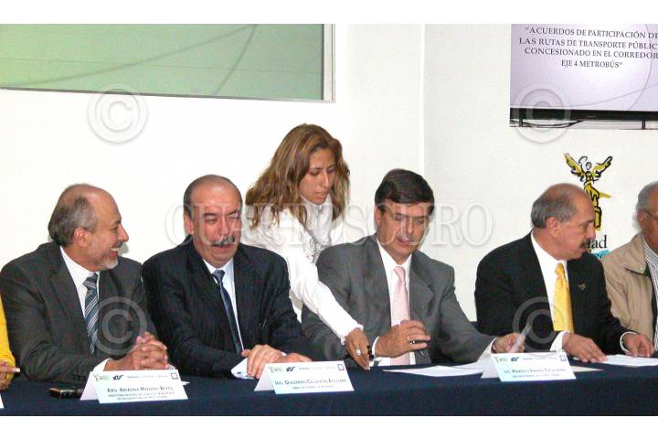 MÉXICO D.F., 30MAYO2008.- El jefe de gobierno Marcelo Ebrard encabezo la firma acuerdo de participación de las rutas de transporte público concesionado en el corredor Eje 4 de Metrobús. FOTO: IVAN MENDEZ/CUARTOSCURO.COM