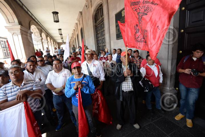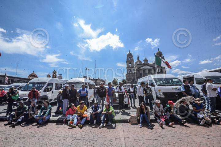 TOLUCA, ESTADO DE MÉXICO, 23OCTUBRE2017.- Por varias horas transportistas Del Valle de Mexico, pertenecientes a Antorcha Campesina, tuvieron cerrada la circulación frente a Palacio de Gobierno, exigiéndole al gobernador Alfredo del Mazo la liberación de concesiones prometidas durante campaña. FOTO: ARTEMIO GUERRA BAZ /CUARTOSCURO.COM