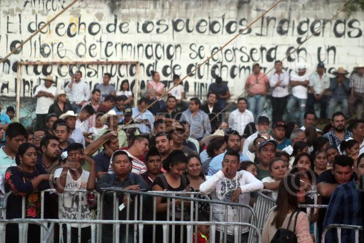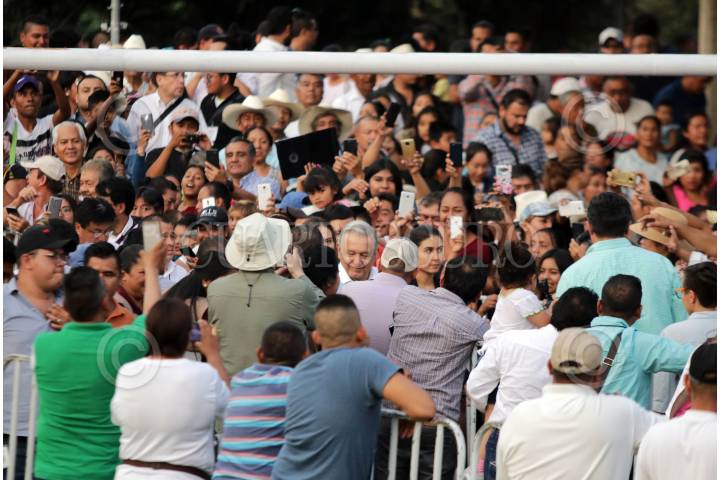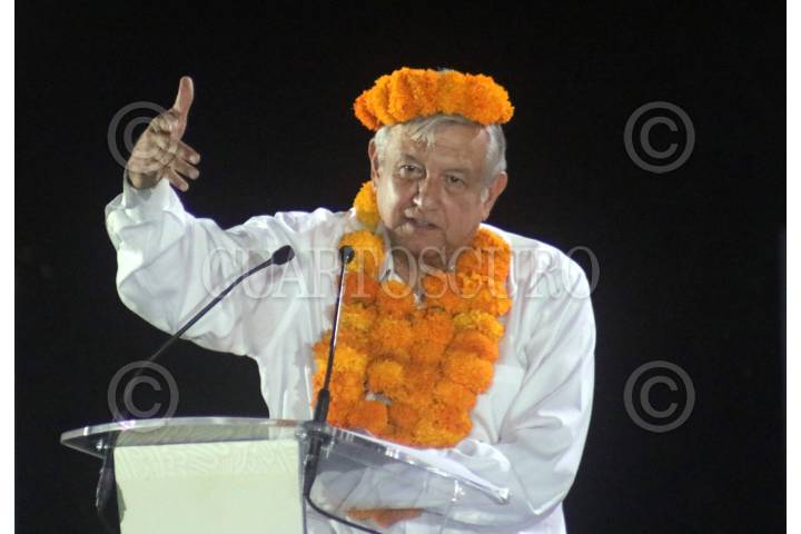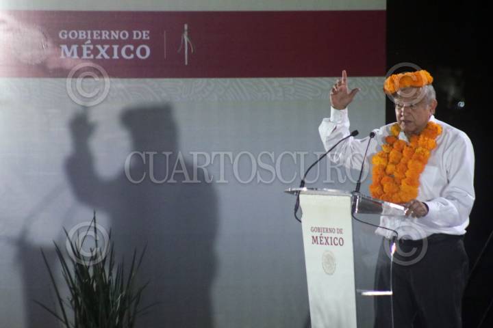 COATETELCO, MORELOS, 22NOVIEMBRE2019.- El presidente de la República, Andrés Manuel López Obrador, durante el “Diálogo con el Pueblo Náhuatl” realizado esta tarde en este municipio indígena de reciente creación. El mandatario federal respaldó al gobernador, Cuauhtémoc Blanco con el siguiente mensaje: “Llevamos muy buena relación con el gobernador, él no está solo, tiene el respaldo del gobierno federal, del presidente, digo esto porque hay veces que son muy abusivos, ventajosos”. Opositores a las concesiones mineras en el estado protestaron fuera del evento, así como familiares de reos del penal de Atlacholoaya, quienes exigen poder comunicarse con sus familiares. FOTO: MARGARITO PÉREZ RETANA /CUARTOSCURO.COM