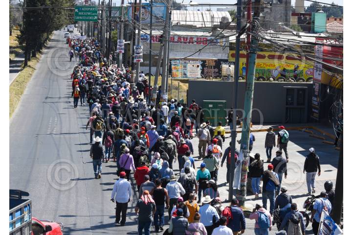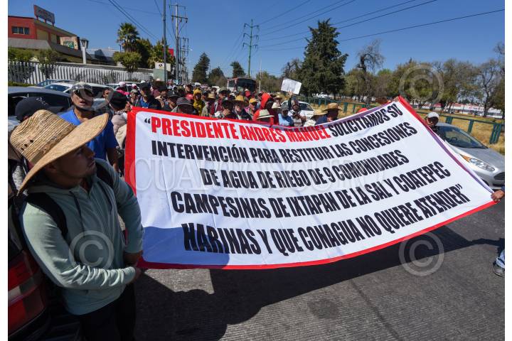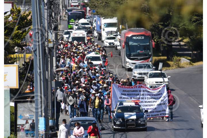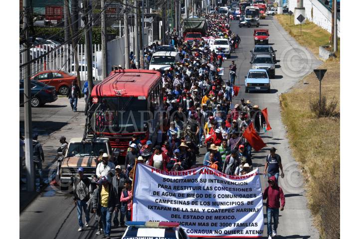 Campesinos de Ixtapan de la Sal y Coatepec Harinas realizan la caminata de la Caravana del Agua que se dirige a Palacio Nacional para pedir la intervención del Presidente Andrés Manuel López Obrador para restituir concesiones de agua en estos municipios.