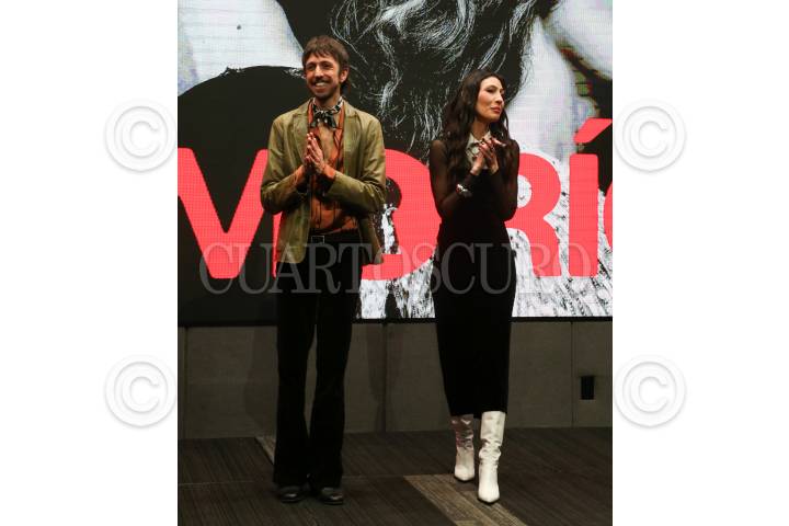 CIUDAD DE MÉXICO, 25 FEBRERO 2025.- Esteman y Daniela Spalla anunciaron en conferencia de prensa el lanzamiento de su disco colaborativo titulado *Amorío*, que formará parte de su presentación en el Palacio de los Deportes el 18 de septiembre de 2025. FOTO: GUSTAVO ALBERTO/CUARTOSCURO.COM