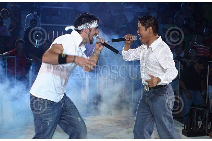 VILLAHERMOSA, TABASCO, 16OCTUBRE2005.- Los integrantes de la Academia Cuarta Generación se presentaron en el Palenque de Gallos, donde registraron un lleno total ante el público juvenil tabasqueño, donde interpretaron sus exitos. FOTO: Marco Polo Guzmán Hernández/CUARTOSCURO.COM