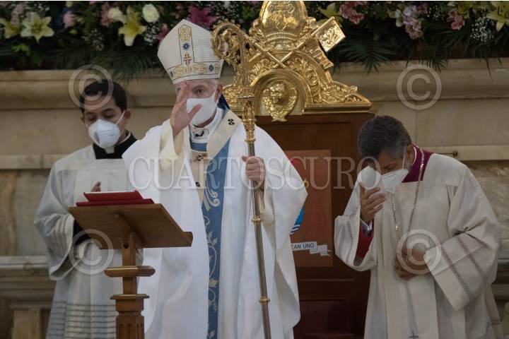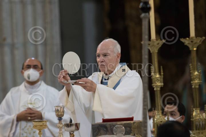 El Arzobispo Carlos Aguiar Retes durante la misa de la Asunción de la Virgen María, en la Catedral Metropolitana.