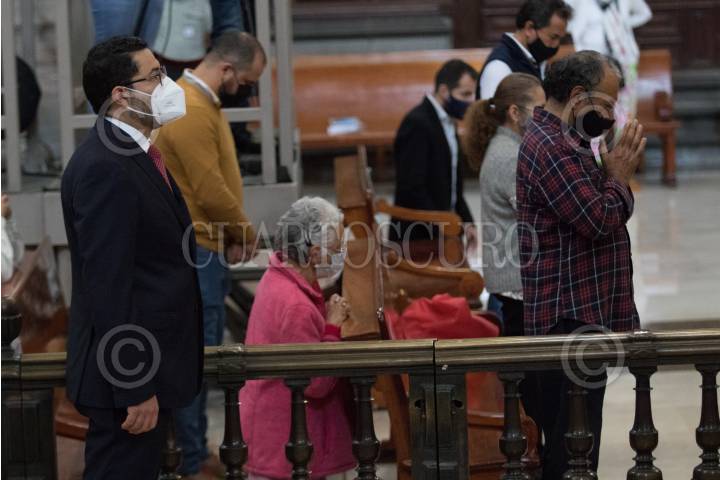 Fieles con cubrebocas durante la misa de la Asunción de la Virgen María en la Catedral Metropolitana.