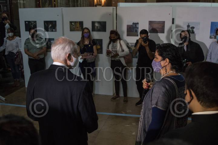 Alejandra Frausto, secretaria de Cultura, y Carlos Aguiar Retes, Arzobispo Primado de México, durante el recorrido de la exposición de las obras de restauración de la Catedral Metropolitana.