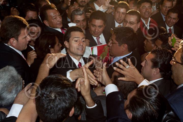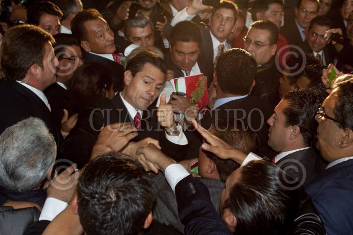 MÉXICO, D.F., 03NOVIEMBRE2011.- Enrique Peña Nieto, ex-gobernador del Estado de México y aspirante a la candidatura priista por la Presidencia de la República, al finalizar el "Foro Nacional de Conclusiones Programa para México" el cual es organizado por la Fundación Colosio, en Polyforum Cultural Siqueiros FOTO: MOISÉS PABLO/CUARTOSCURO.COM