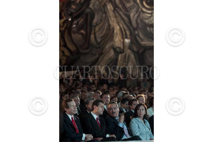 MÉXICO, D.F., 03NOVIEMBRE2011.- En primera Fila Emilio Gamboa Patrón, Manuel Ángel Nuñez, Enrique Peña Nieto, Manlio Fabio Beltrones, Enrique Peña Nieto, Cristina Díaz, Marco Antonio Bernal, y Luis Videgaray, durante el "Foro Nacional de Conclusiones Programa para México" que organiza la organización priista Fundación Colosio, en Polyforum Cultural Siqueiros FOTO: MOISÉS PABLO/CUARTOSCURO.COM
