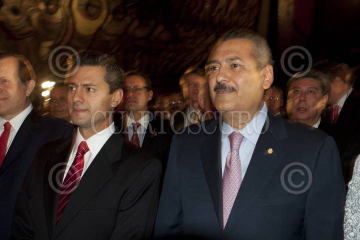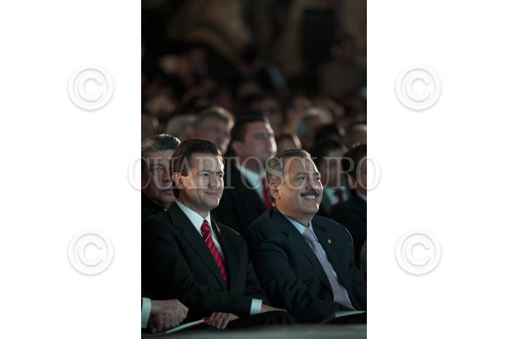 MÉXICO, D.F., 03NOVIEMBRE2011.- Enrique Peña Nieto, y Manlio Fabio Beltrones, son las cartas para la candidatura presidencial del PRI, ambos participaron en el "Foro Nacional de Conclusiones, Programa para México" y los cuales se realizaron en varios estados de la República, hoy se leyeron las conclusiones en un evento realizado en el Polyforum Cultural Siqueiros FOTO: MOISÉS PABLO/CUARTOSCURO.COM