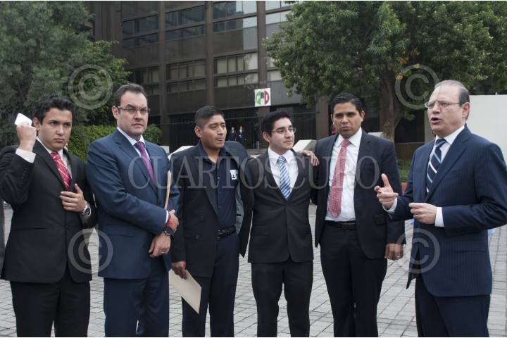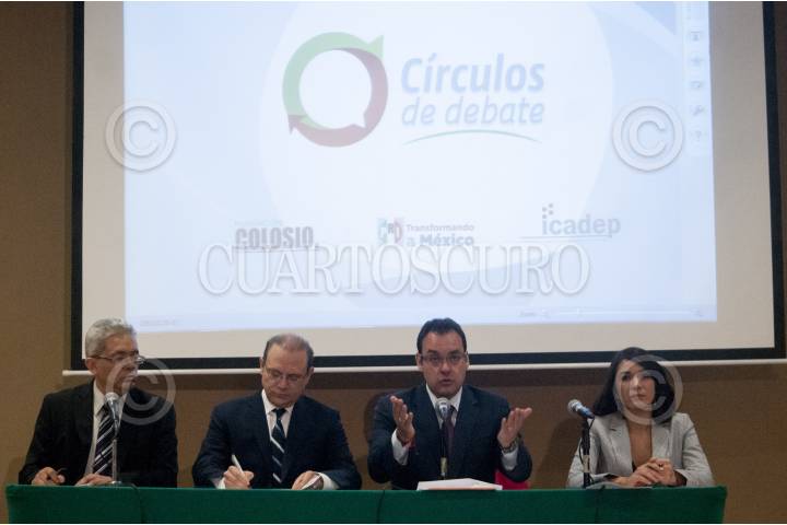 MÉXICO, D.F., 28JULIO2014.- Adrián Gallardo Landeros, presidente de la Fundación Colosio y Guillermo Deloya Cobián, presidente del Instituto de Capacitación y Desarrollo Político, encabezaron una conferencia de prensa para hablar sobre el concurso nacional Círculos de Debate, que tiene como objetivo buscar nuevos talentos para el partido tricolor entre los jóvenes de todo el país. FOTO: DIEGO SIMÓN SÁNCHEZ /CUARTOSCURO.COM