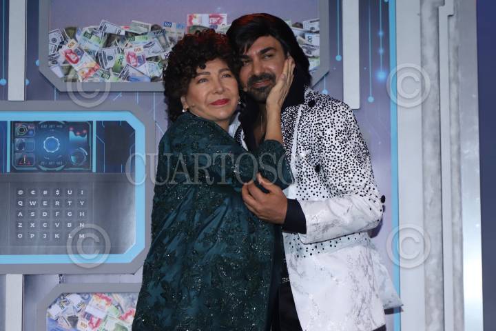 CIUDAD DE MÉXICO, 17SEPTIEMBRE2025. La productora Rosa María Nogueron y El Vítor (Adrián Uribe) presentan el programa de concursos “Piensa Rápido”, de Televisa Univision. FOTO: EDGAR NEGRETE LIRA/CUARTOSCURO.COM
