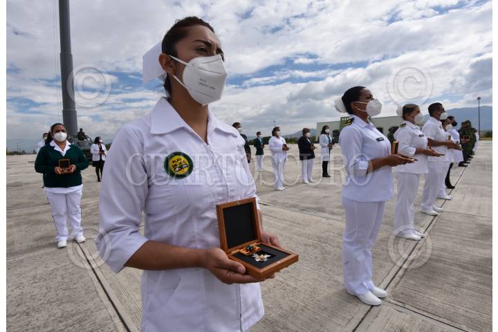 La 22 Zona Militar reconoció con la condecoración “Miguel Hidalgo” grado Cruz a profesionales de la Salud del Estado de México que han combatido el COVID-19.